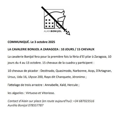 Communiqué de la cuadra Bonijol à propos de son engagement à Saragosse pour la prochaine Feria del Pilar…