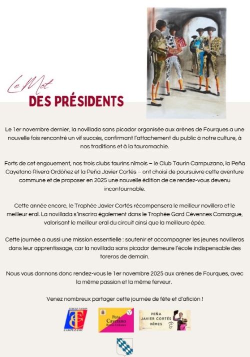 Tous les détails sur la journée taurine du  samedi 1er novembre…