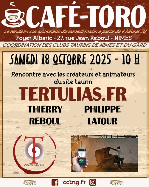 Samedi 18 octobre, Café-Toro avec la présentation du site taurin Tertulias…