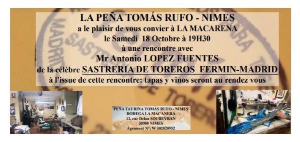 A l’initiative de la Peña Rufo, le vendredi 18 octobre, réception d’Antonio López, tailleur de la maison Fermín, à la Macarena de Nîmes…