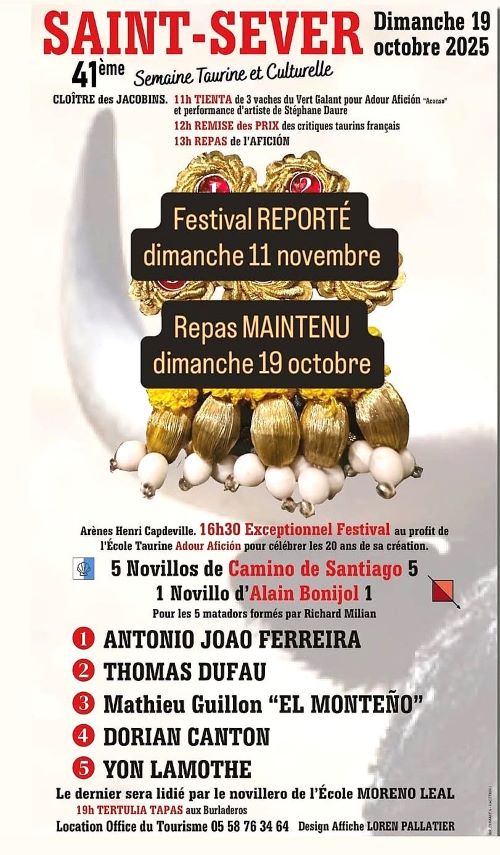 Report du festival, maintien du repas du dimanche 19 octobre…