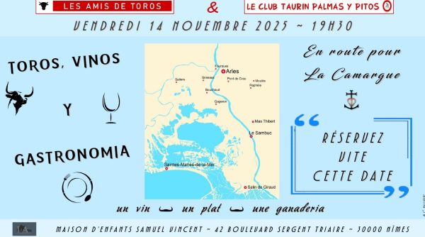 IVe édition de TOROS, VINOS Y GASTRONOMIA qui se déroulera le vendredi 14 novembre prochain à 19h30 à la Maison d’Enfants Samuel Vincent…