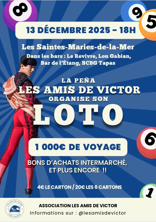 Le samedi 13 décembre aux Saintes-Maries-de-la-Mer, loto de la Peña « Les Amis de Victor »…