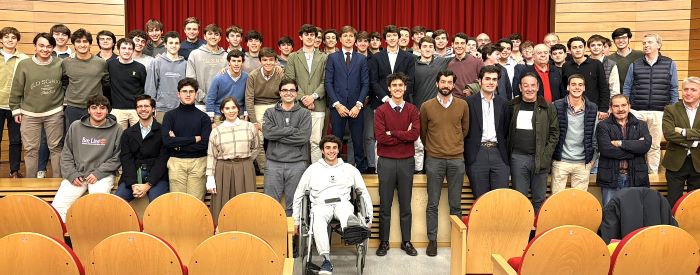 Le torero français a participé à un colloque organisé par le Club Taurin du Colegio Mayor Belagua, où il a partagé sa trajectoire professionnelle et ses expériences dans les arènes de Pampelune devant plus de deux cents étudiants.