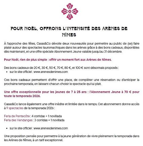 Pour Noël, deux propositions de cadeaux des Arènes de Nîmes…