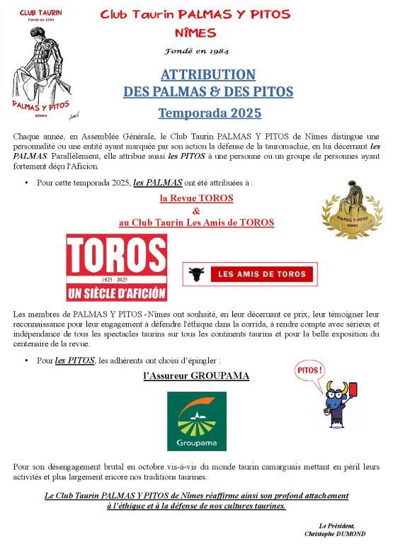 Les trophées du CT Palmas y Pitos de Nîmes pour la temporada 2025…