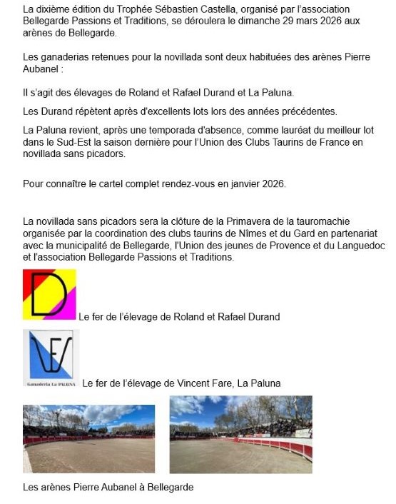 L’organisation du Trophée Castella dévoile les élevages retenus pour l’édition 2026 à Bellegarde…