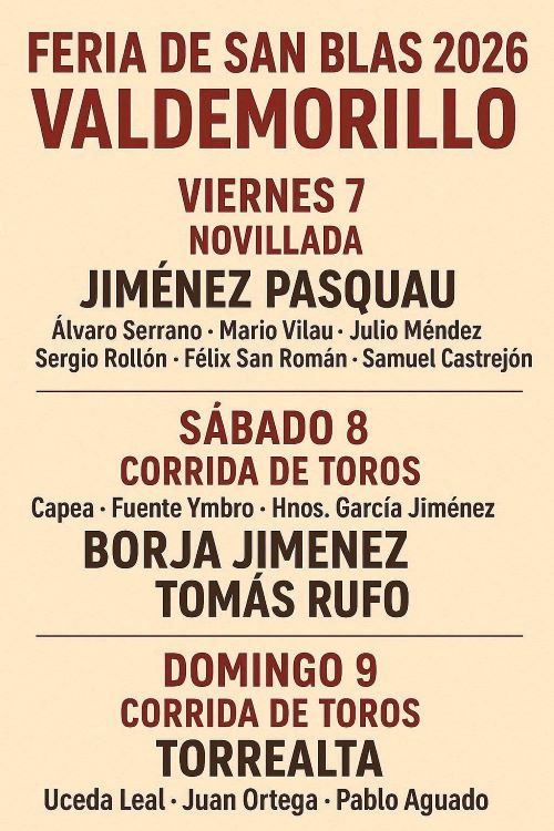 Cartels de la Feria de San Blas 2026 qui se déroulera du 7 au 9 février…