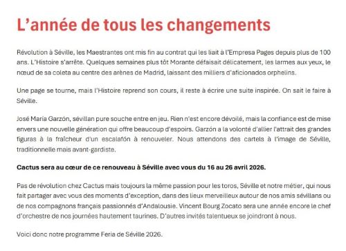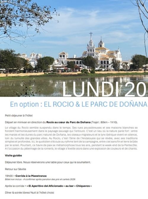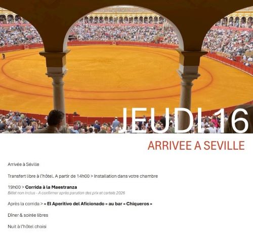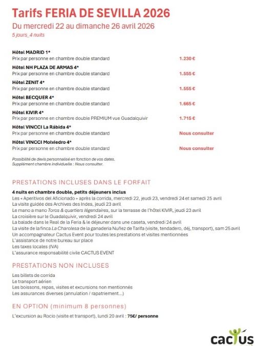 Programme d’un déplacement à la Feria de Séville 2026 proposé par l’agence Cactus Event…
