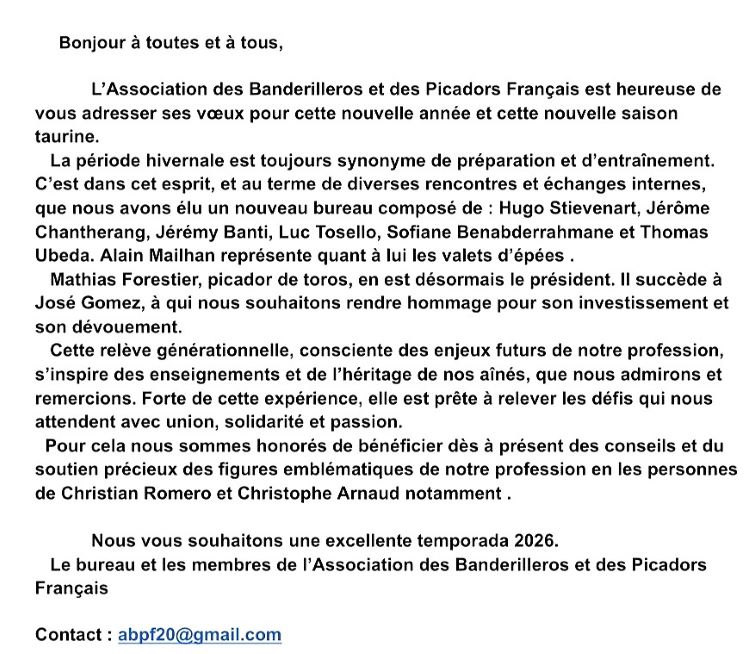 Nouveau bureau de l’Association des Banderilleros et Picadors Français…