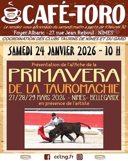 De ce fait ce samedi, pas de Café-Toro. On se retrouve le 24 janvier pour la présentation de l’affiche de la PRIMAVERA 2026, en présence de l’artiste qui l’a réalisée. Tic-Tac, Tic-Tac,Tic-Tac …