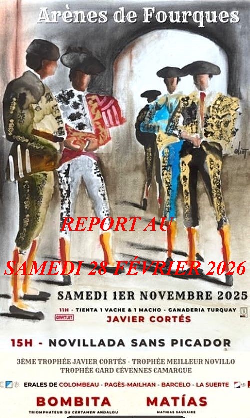 Le samedi 28 février, novillada sans picadors avec le cartel de celle reportée le 1er novembre dernier…