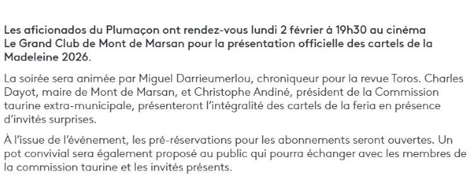 Présentation des carrtels de la Feria de la Madeleine 2026 le lundi 2 février…