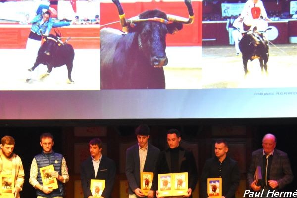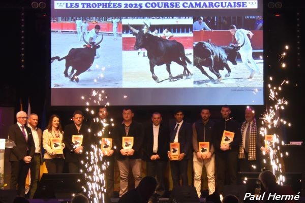 Inès est venue aussi sur scène pour évoquer dans les grandes lignes ce qu’a été la temporada 2025 dans tous les secteurs, guidant par ses questions les interventions des trois délégués, Thierry Reboul pour la corrida, Nicolas Manchon pour la course camarguaise puis Lucien Laurrède pour la course landaise. Chacun a pu distinguer les moments forts des trois disciplines, illustrés par des montages vidéo d’une grande qualité, avant que l’on en vienne au palmarès et à la distribution des trophées.
