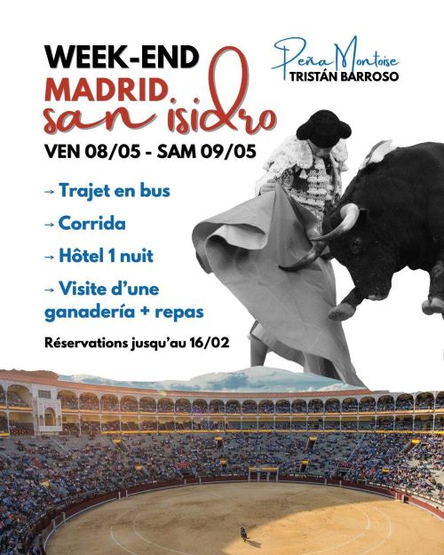 Pour la Feria de San Isidro, la Peña Montoise Tristán Barroso organise un week-end madriléne à l’occasion de la confirmation de son torero à Las Ventas…