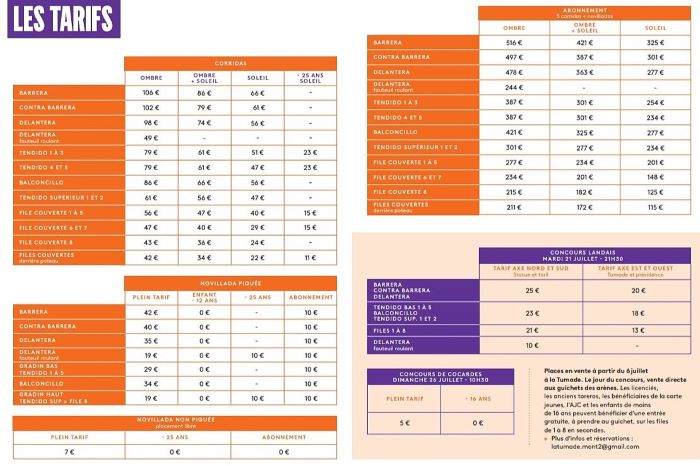 Dès le 2 mars, les aficionados sont invités à venir s’abonner ou renouveler leur abonnement directement à la Régie des Fêtes et Animations. La billetterie tout public ouvrira ensuite le 1er juin en ligne, puis le 15 juin à la Régie.