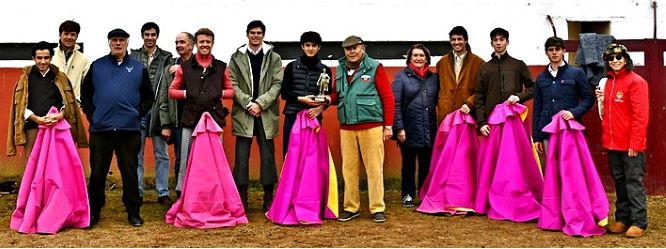 Nous descendons tous sur le sable des arènes pour remettre à Clovis le trophée du « Meilleur novillero sans picadores 2025 ».