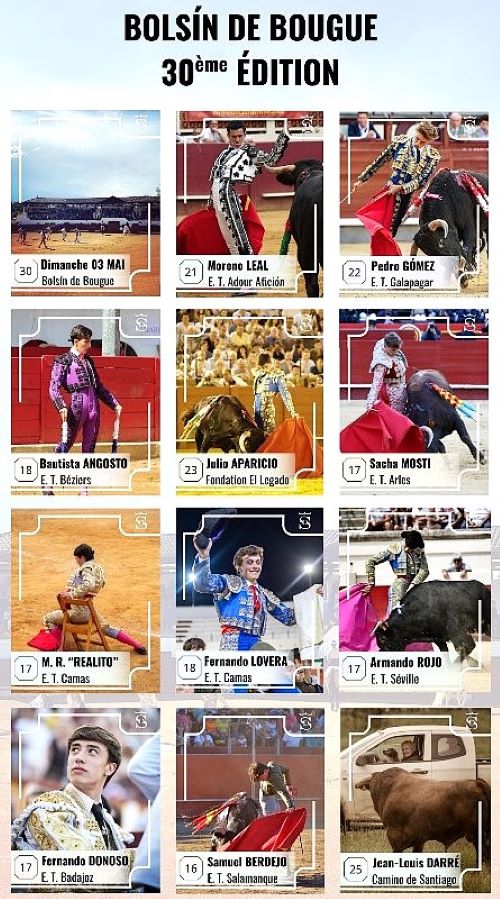 Le Cercle Taurin Soledad a le plaisir de vous annoncer les 10 novilleros sélectionnés pour participer à son 30ème bolsín le dimanche 03 mai…