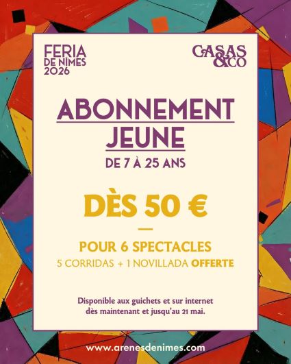 Les Abonnements Jeunes en amphithéâtre sont disponibles dès maintenant et jusqu’à la Feria, aux guichets et sur notre billetterie en ligne.