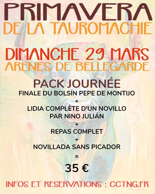 « Offre particulière réservée aux membres des clubs taurins de la CCTNG, pour le WE de la Primavera de la tauromachie à Bellegarde, les vendredi 27, samedi 28 et dimanche 29 mars 2026.