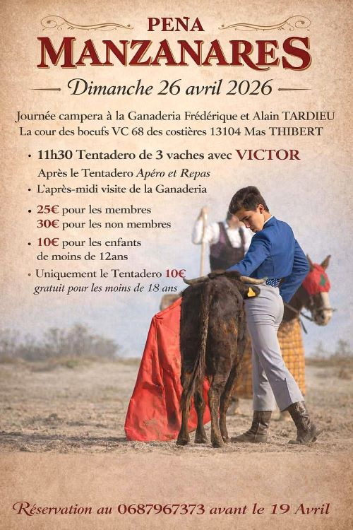 Le dimanche 26 avril, journée campera de la Peña Manzanares avec le novillero Victor…