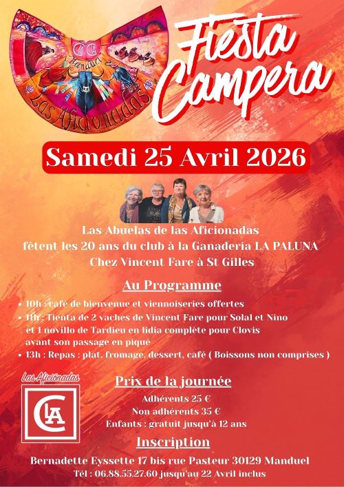 Le samedi 25 avril, Fiesta Campera du CT Las Aficionadas à la ganadería La Paluna avec Solal, Nino et Clovis…