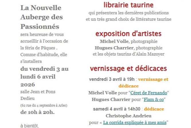 A Arles, pour la feria pascale du 3 au 6 avril, la Nouvelle Auberge Espagnole propose toute une série d’ouvrages taurins…