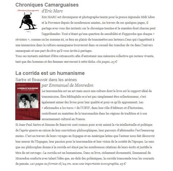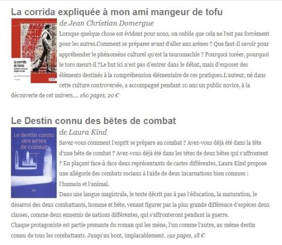 Autres nouveautés taurines