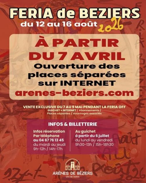 Les Arènes de Béziers ont le plaisir de vous informer de l’ouverture officielle de la vente des places séparées pour la Feria 2026…