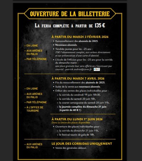 La direction des arènes d’Istres vous informe que la billetterie pour les places individuelles est ouverte…