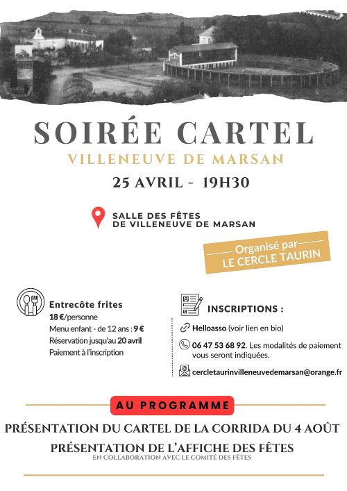 Programme de la soirée de présentation du cartel 2026 pour la corrida du 4 août prochain…