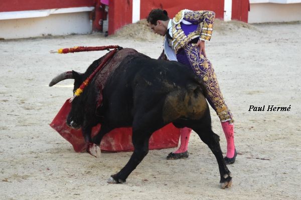 Adriano venait à St-Martin après quasiment deux ans de disette et l’on sentit rapidement qu’il n’était pas venu faire de la figuration. Avec son Saltillo, il s’engagea fort dans la bataille, se faisant remarquer avec le capote avant un bon premier tercio. Banderilles à oublier, brindis au public avant de transmettre par son entrega avec l’étoffe, la conclusion s’avérant toutefois moins convaincante. En fin de course, il put tirer parti de son Cuadri lors d’une partition décidée, courageuse et enlevée, une partie de l’assemblée pétitionnant en fin d’exercice une oreille, sans que cela ne soit suivi d’effet. C’est en définitive un Adriano déçu qui quitta le cirque, non sans saluer une dernière fois l’aficion cravenque…
