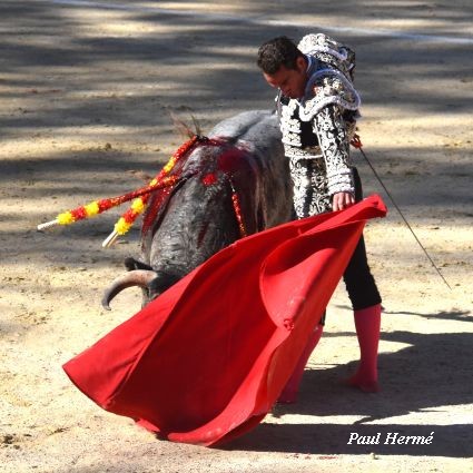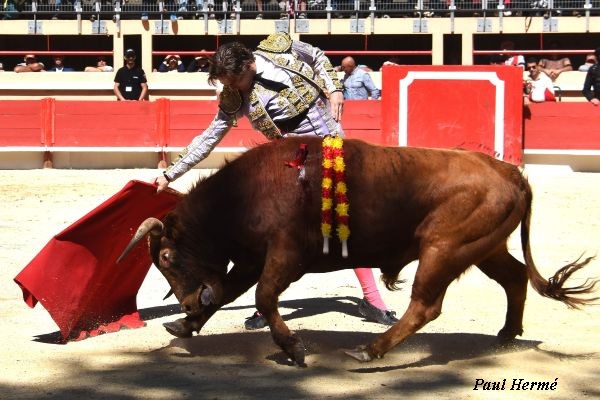 Alberto Lamelas a ouvert les hostilités avec un adversaire qui prit deux piques mesurées avant un second tercio médiocre puis un brindis à l’assistance d’une faena comprenant quelques bonnes phases terminées toutefois par des difficultés à cadrer. Une lame tendida et trasera puis descabello. Avec le cuarto, de Cuadri, un superbe veleto porteur de deux fines aiguilles et bien piqué puis banderillé par Víctor del Pozo qui salua, le Madrilène pincha une faena qui aurait mérité sans cela un meilleur sort. Dommage.