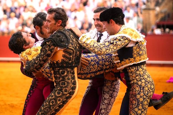 Borja Jiménez et Tomás Rufo ont alors pris les choses en mains, brindant leur toro à leur infortuné compañero, montera posée sur la porte de l’infirmerie. Mais si le cœur n’y était plus vraiment, la suite allait toutefois réserver quelques bons moments de torería, pour Borja lorsqu’il dut en finir avec le toro de Morante, puis avec l’ultime face auquel le jeune maestro d’Espartinas se la joua, au point que l’on pouvait à un moment pressentir une ouverture de la Porte du Prince. Mais pour cela, il aurait fallu une meilleure place pour la lame, ce qui limita son compteur à deux oreilles, une à son premier, puis vuelta avec celui de Morante et enfin une autre oreille avec le dernier, accompagnée toutefois d’une pétition assez forte, mais pas suffisante. Hors bilan comptable, on peut tout de même affirmer que ce lundi dans la Maestranza, Borja Jiménez a encore marqué des points…