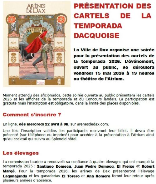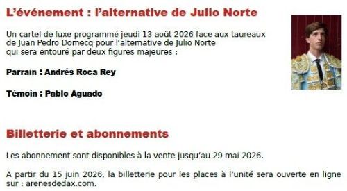 Présentation des cartels de la temporada 2026 avec notamment l’alternative de Julio Norte…