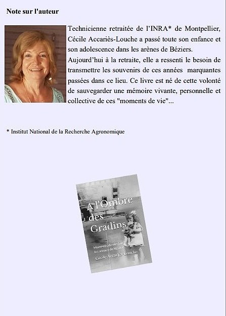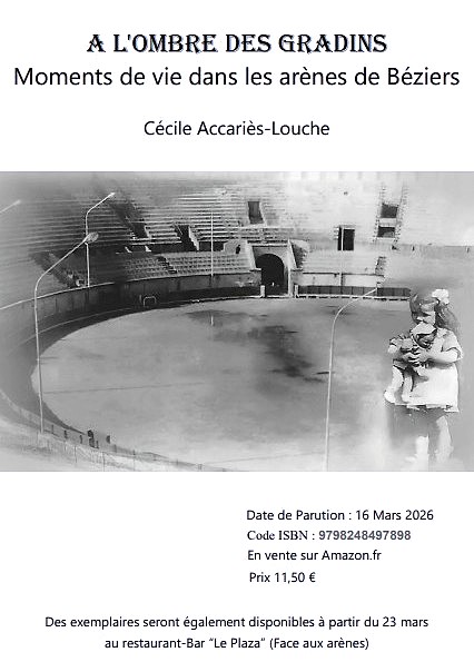– Présentation du livre de Cécile Louche-Acariès « A l’ombre des gradins » en présence de l’autrice qui a vécu pendant des années dans les arènes de Béziers. Elle dédicacera son ouvrage !!!