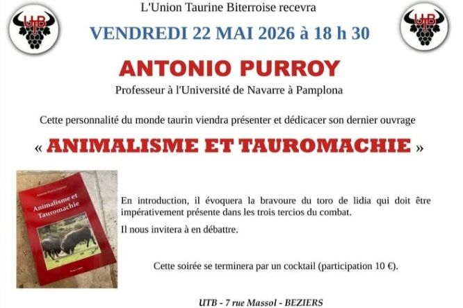 Le vendredi 22 mai à 18h30, l’Union Taurine Biterroise recevra Antonio Purroy, Professeur à l’Université de Navarre à Pamplona et le lendemain, Nuit Européenne des Musées…